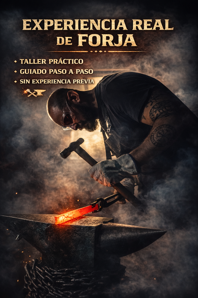 Partiendo de un lingote o pletina de acero especial para cuchillería, forjarás tu propio cuchillo funcional y personalizado, viviendo el proceso completo de principio a fin.