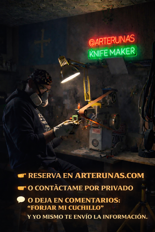 • Forja tradicional: fuego, martillo y yunque para dar forma al acero.
